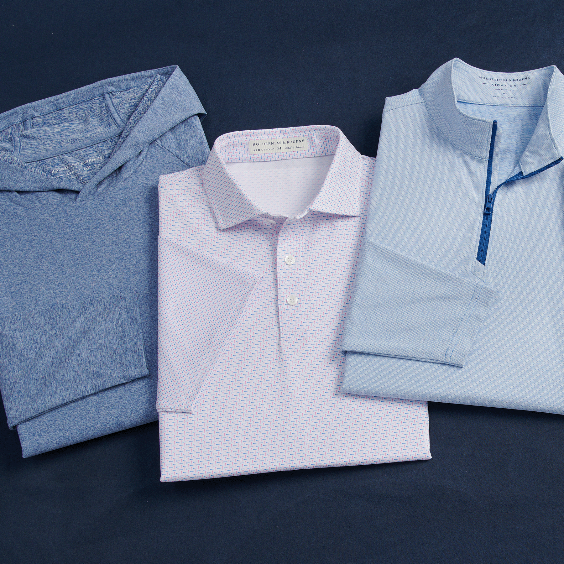 Our AIRATION® collection of men's polo shirts and layering styles features our most technical fabric yet, designed with micro perforations engineered for optimal airflow, comfort, and athletic performance.