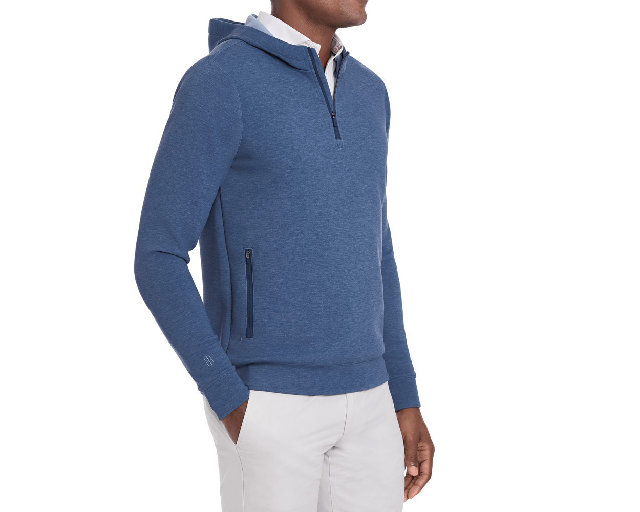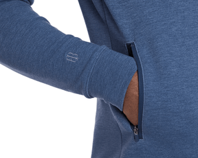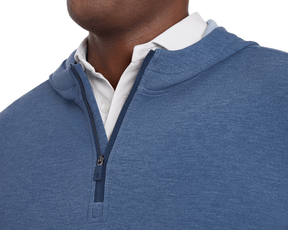 Introducing our first quarter-zip hoodie, The Tilley. Designed with versatility in mind, this midweight performance style features a sleek silhouette in an ultra soft synthetic blend, making it ideal for travel and those early rounds on cooler days. UPF 50+ sun protection and 4-way stretch. Banded cuffs and hem.